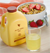 z.B. das Vitalgetränk "Forever Aloe Bits ´n Peaches", Nr. 77, ist reich an Vitaminen und Mineralstoffen sowie sieben wichtigen Aminosäuren, die unmittelbar für das Zellwachstum verantwortlich sind.